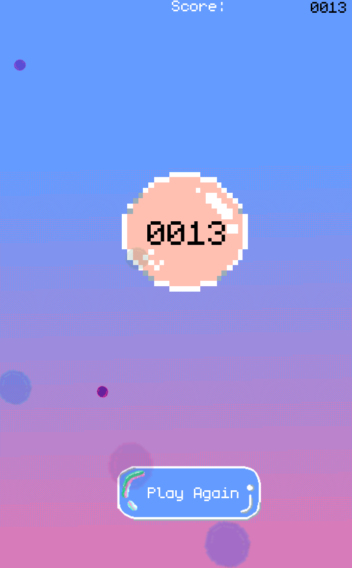 BubblePop is a simple idea of having bubbles spawn and clicking on it to pop. It's a 10 second game which shows the total bubbles popped at the end of the game. :) Everything is made by MichelleTanPY - music, pixel arts and coding (with the help of ChatGPT)